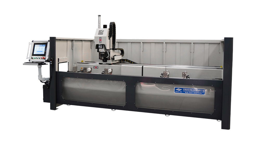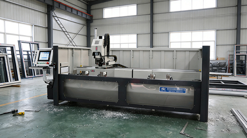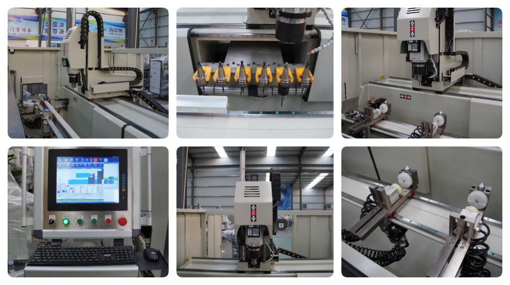 MC3-3000 is a CNC machining center,It has X,Y and Z three CNC controlled axis.Drilling,contour or pocket milling and tapping can be done on this machine. This machine can be used for processing windows,doors,façade and curtain wall.As well as other products made of aluminum tubes. Example,the lock holes and slots,hinge holes,weep slots and assembly holes on aluminum windows and doors.
